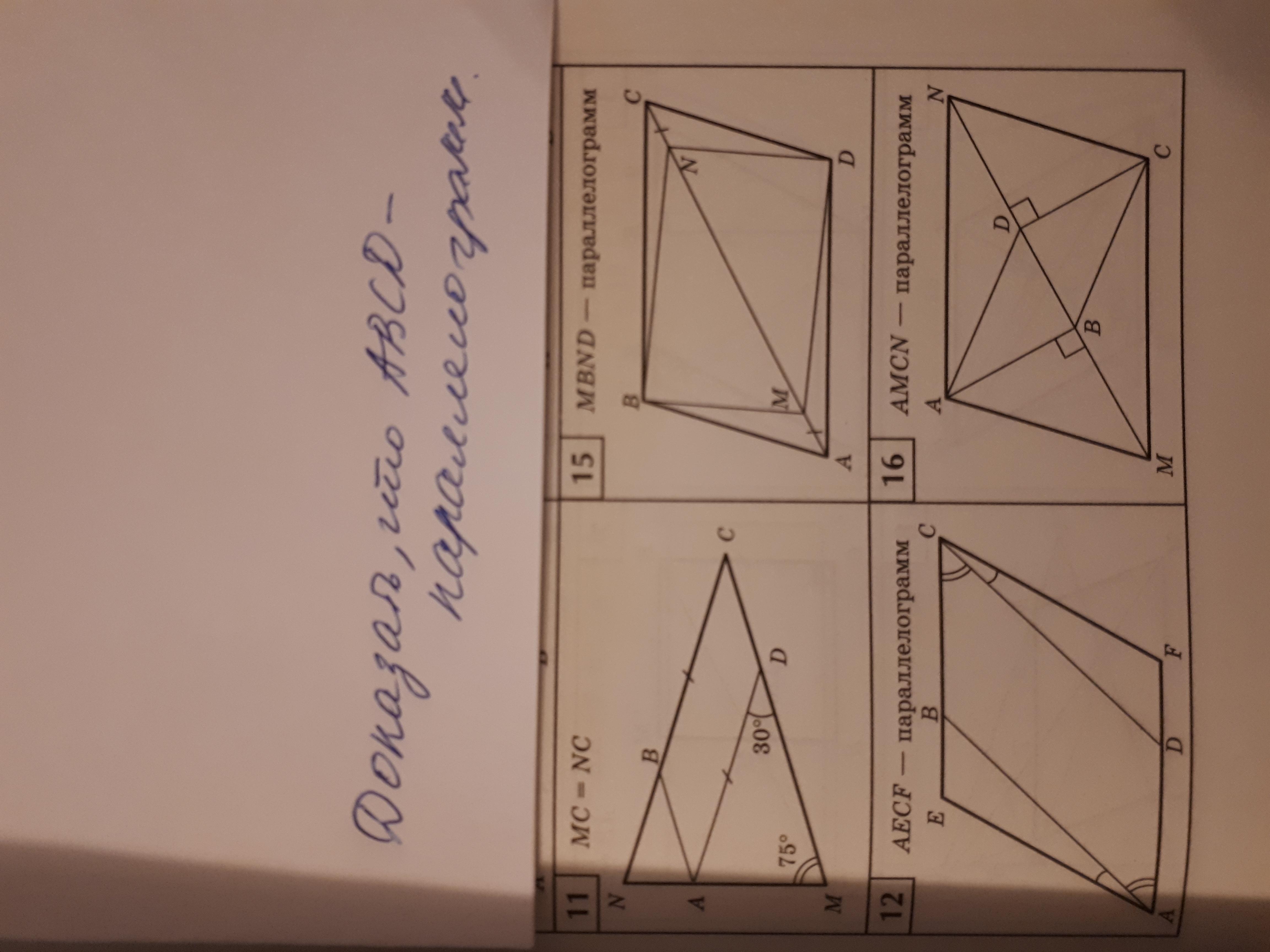 Помогите, пожалуйста, очень срочно!!! Даю 34 балла!!! Задания:11;12;15!!! Помогите!!! Надо доказать,что ABCD-параллелограмм. Заранее,спасибо!!