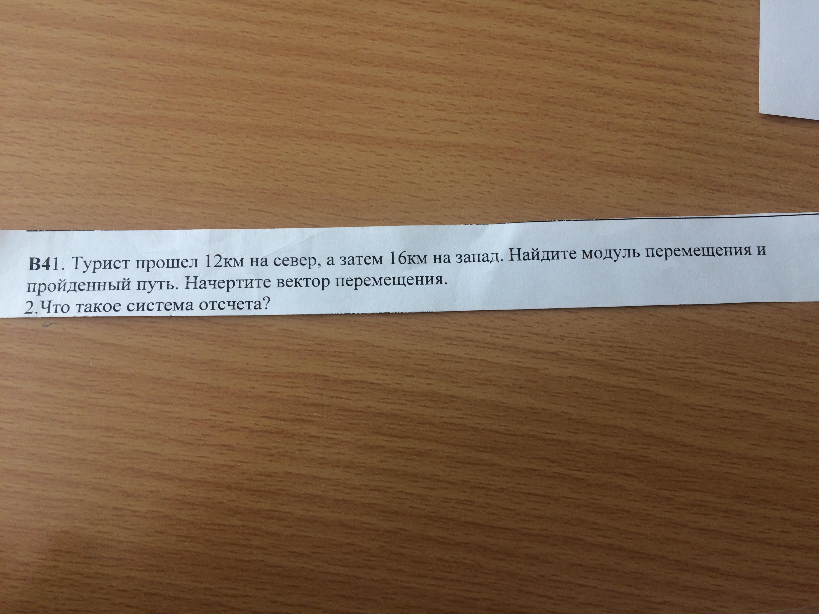 Вектор перемещения будет гипотенузой прямоугольного треугольника образованная катетами 12 и 16 км. Направление от 12 до 16.