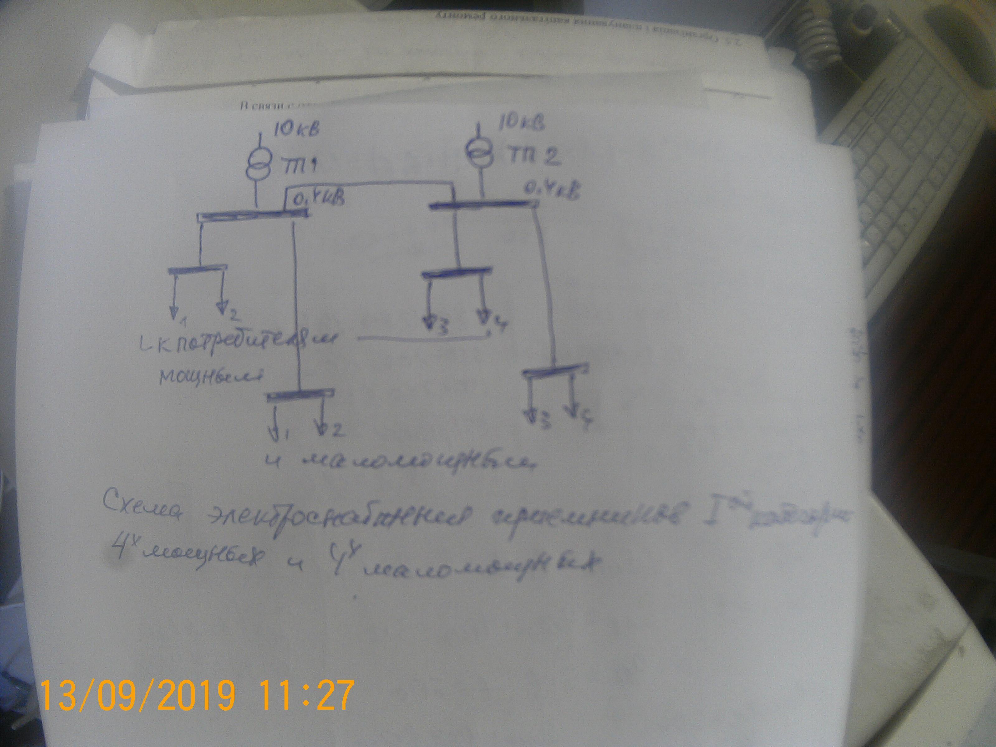 Разработать схему электроснабжения потребителей согласно заданию первая категория приёмников 4 мощных и 3 маломощных приемники