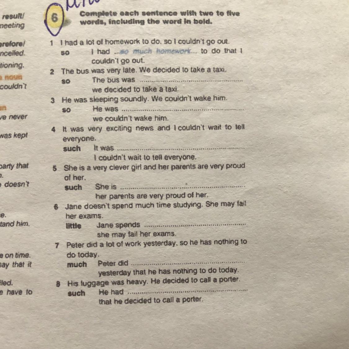 7 Peter did a lot of work yesterday, so he has nothing to do today. much Peter did so much work yesterday that he has nothing to do today.