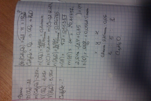 относительная плотность паров органического соединения по хлору равна 22. При сжигании 2.84 г этого вещества образуется 4,48 л оксида углерода (4) н. у. и 3.96 л воды. Выведите молекулярную формулу этого соединения.