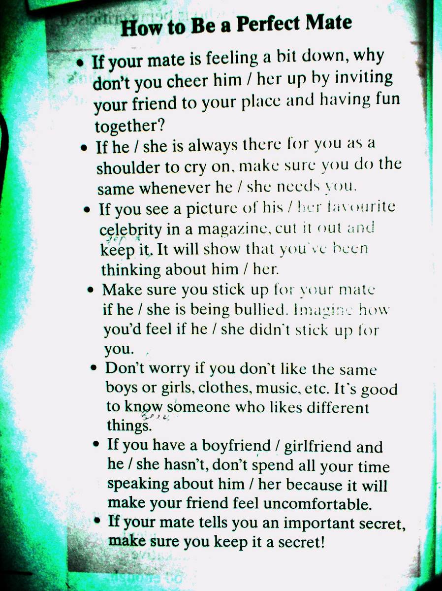 Если у тебя есть парнеь или девушка то трать все твое время на разговоры о нем или ней потому что они будут чувствовать себя не комфотртно Если тебе доверяют важный секрет то ты должен точно держать это в тайне