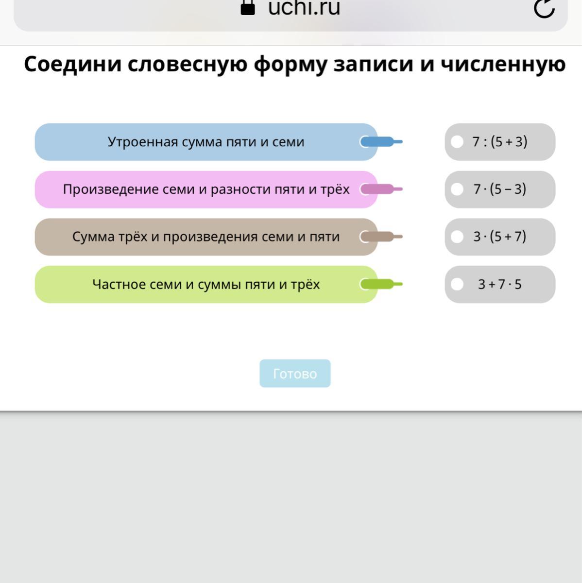 частное семи и суммы пяти и трёх - 7:(5+3)