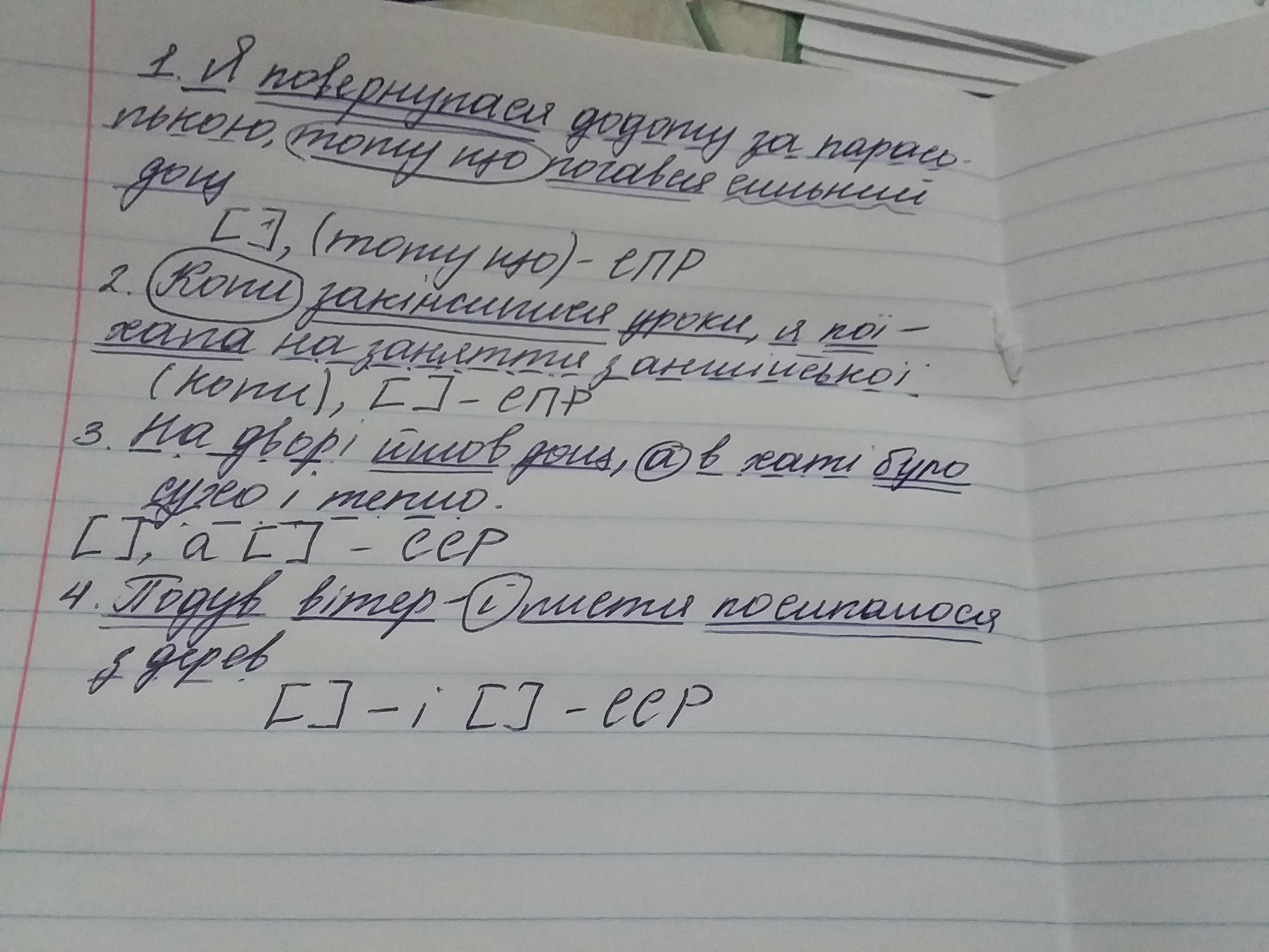 1. Я повернулася додому за парасолькою, тому що почався дощ.