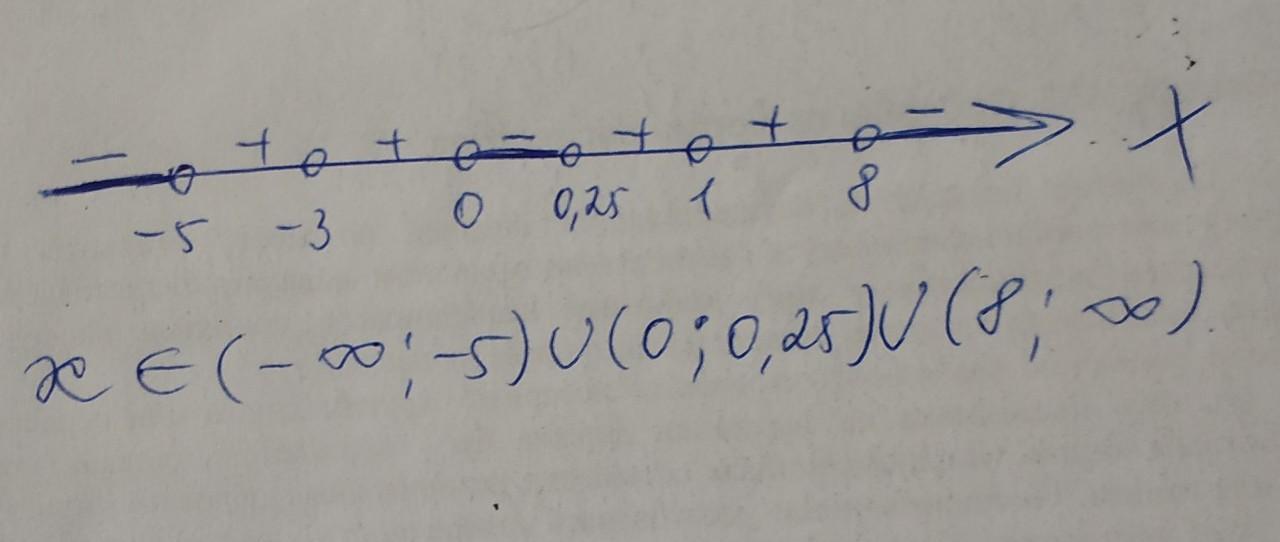 нечётное количество одинаковых корней, => знаки при переходе через точку х=0 меняем.