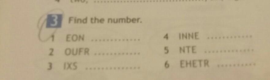Ответ:1:one 2:four 3:six 4:nine 5:ten 6:there