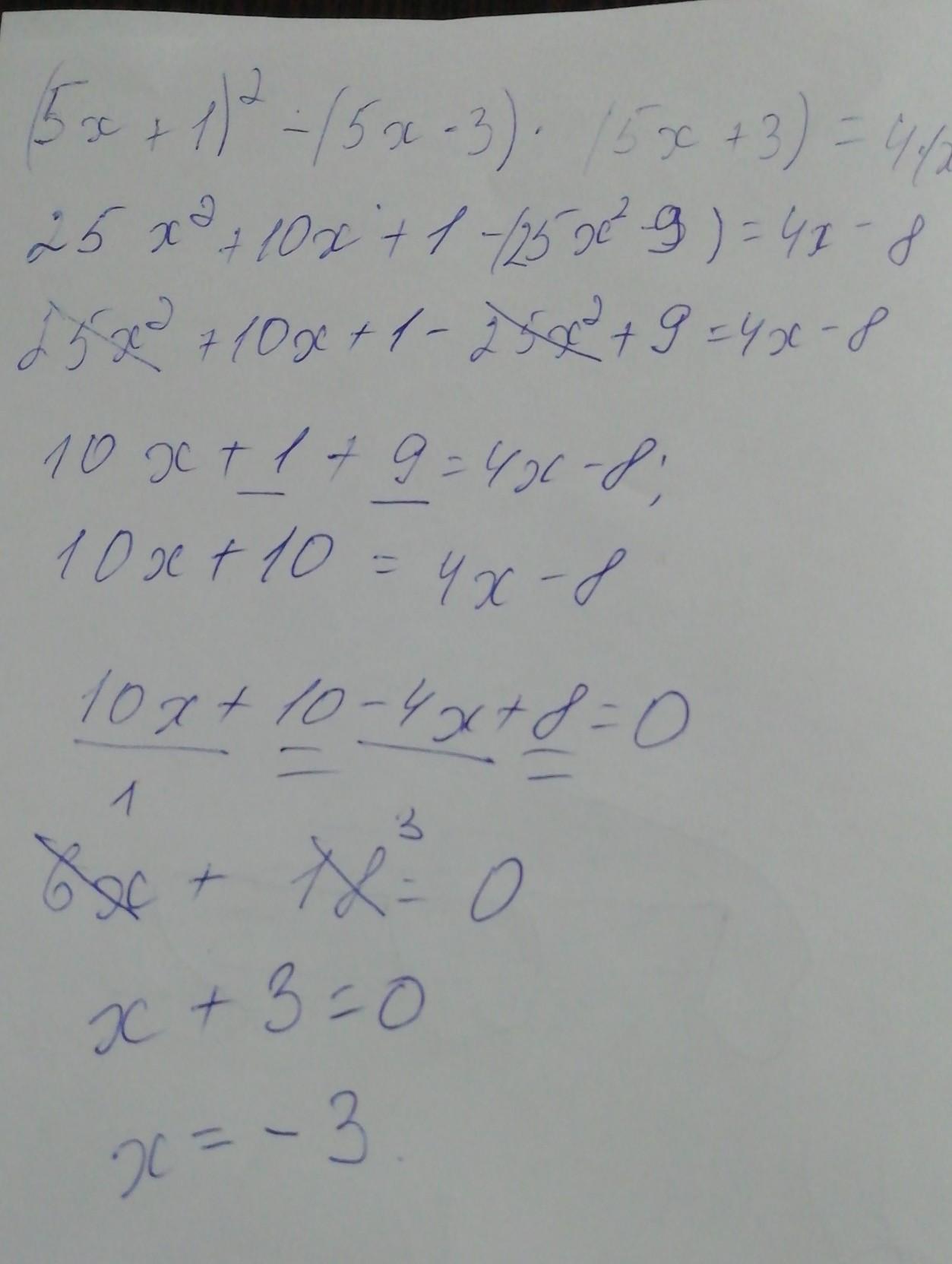 (5х + 1)² - (5х - 3) * (5х + 3) = 4 * (х - 2)