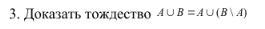 ∀x ∈ (A∪B) ⇔ x ∈ A ∨ x ∈ B ⇔ x ∈ A ∨ x ∈ B ∧ x ∉ A ⇔ x ∈ A ∨ x ∈ (B\A) ⇔ x ∈ (A ∪ (B\A)), т.е. A ∪ B = A ∪ (B\A)