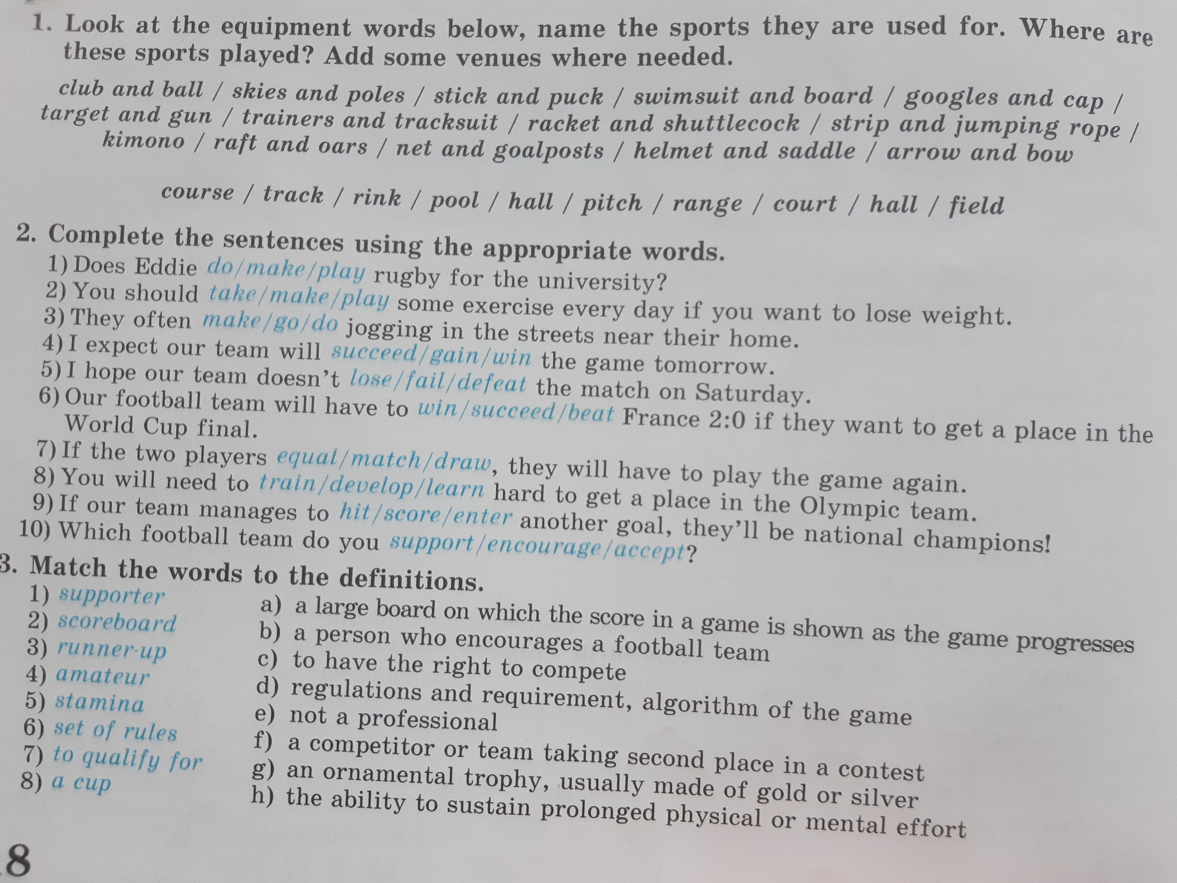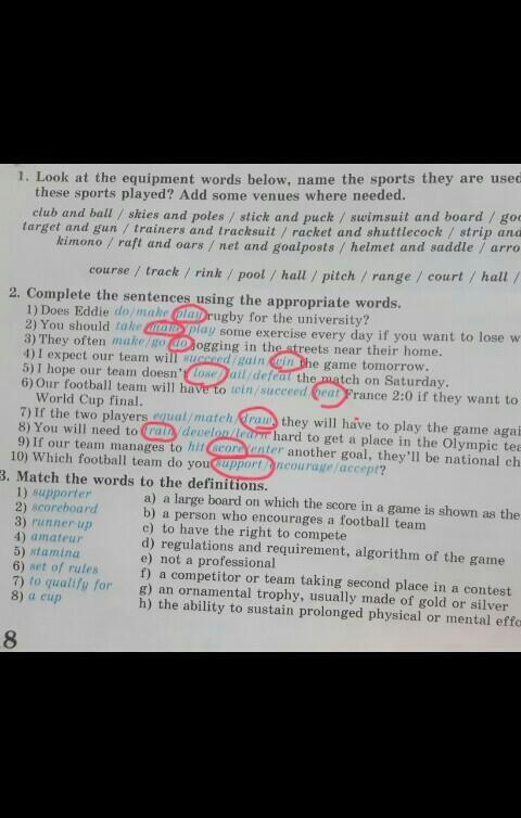 play, take, go, win, lose, beat, draw, train, hit, support