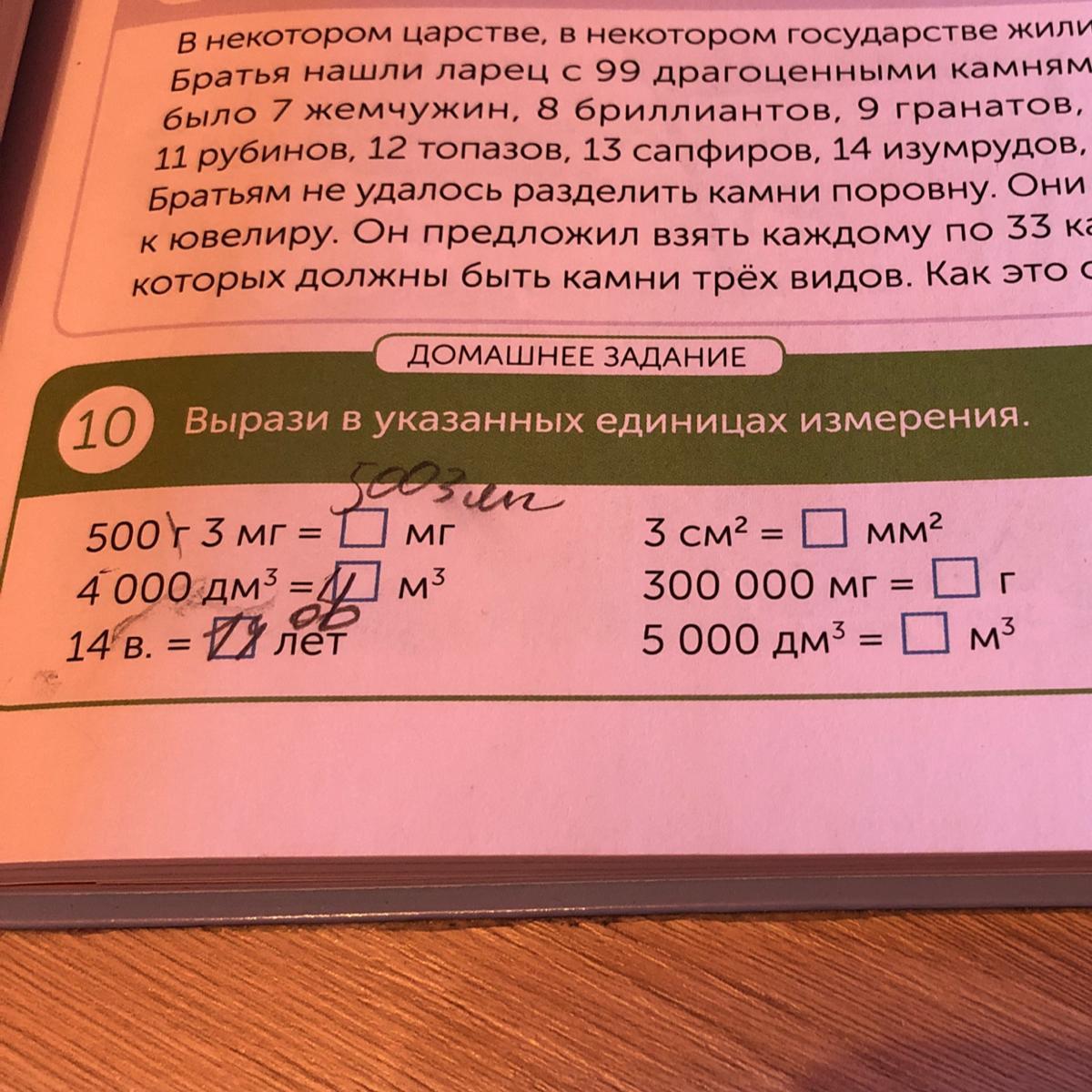 500 г 3 мг = (500 · 1000) мг + 3 мг = 500 000 мг + 3 мг = 500 003 мг