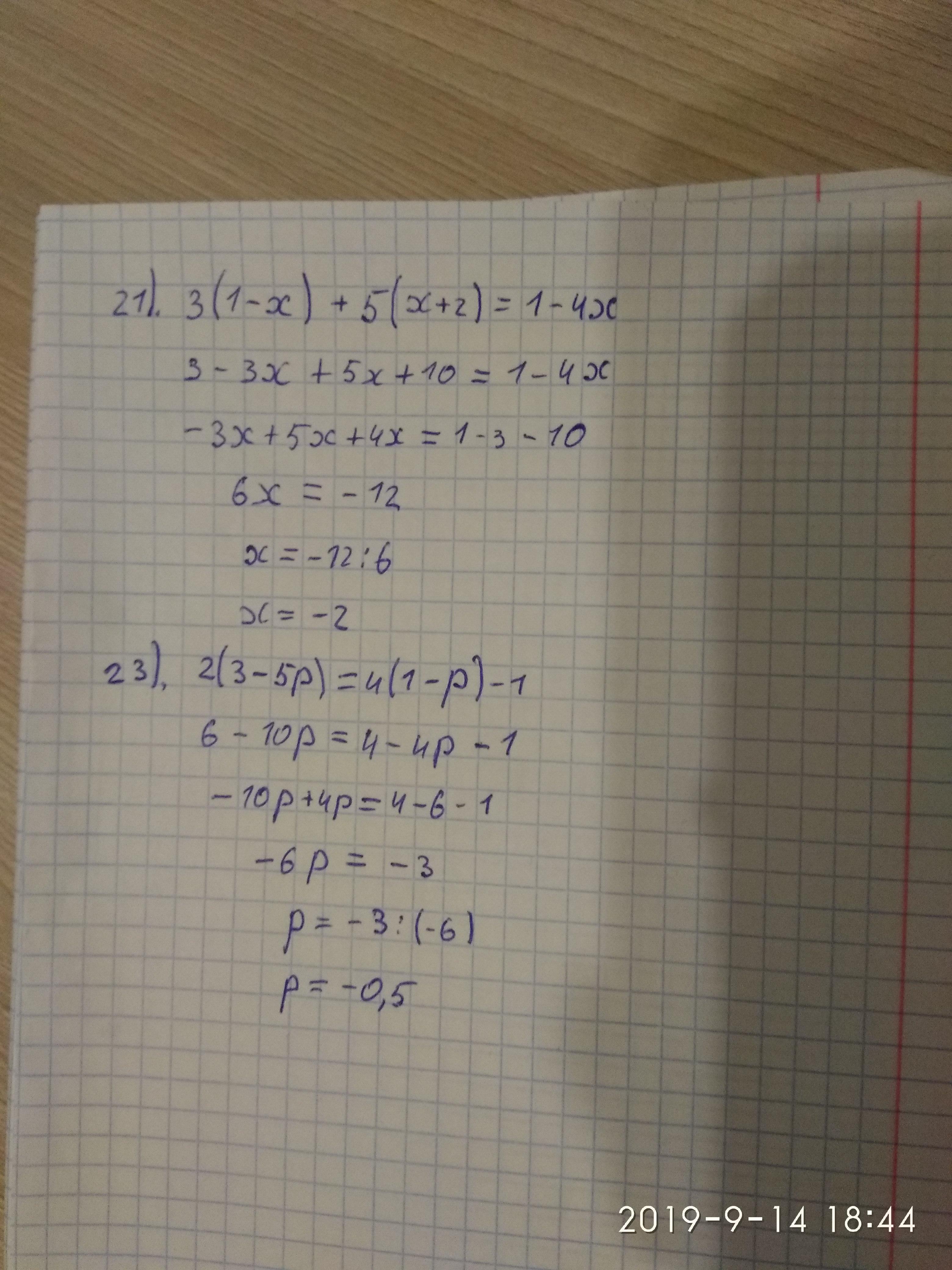 Объяснение: Сначала мы раскрыли скобки, потом неизвестные перенесли в одну сторону, а обычные числа в другую сторону, при этом переносе мы изменяем знаки чисел, вот если у числа был впереди минус, то, перенося через знак равно, он уже станет плюсом и наоборот. Нашли неизвестный множитель(х и р), разделив произведение на известный множитель.