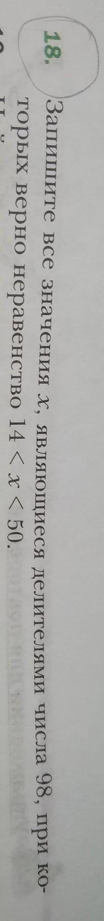 запишите все значения х, являющиеся делителями числа 98, при которых верно неравенство 14<х<50