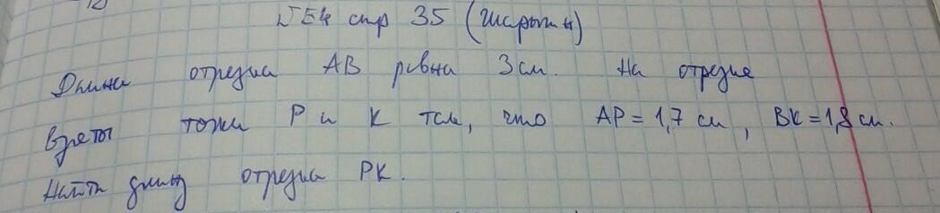 находим отрезок РК = ВК - РВ = 1,8 - 1,3 = 0,5 (см)
