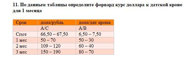 По данным таблицы определите форвард курс доллара к датской кроне для 1 месяца