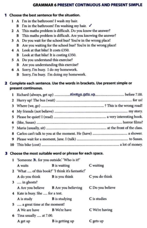 Present Continuous в данных случаях используется для показа действий в данный момент. Словами подсказками могут послушить Listen! или Look!