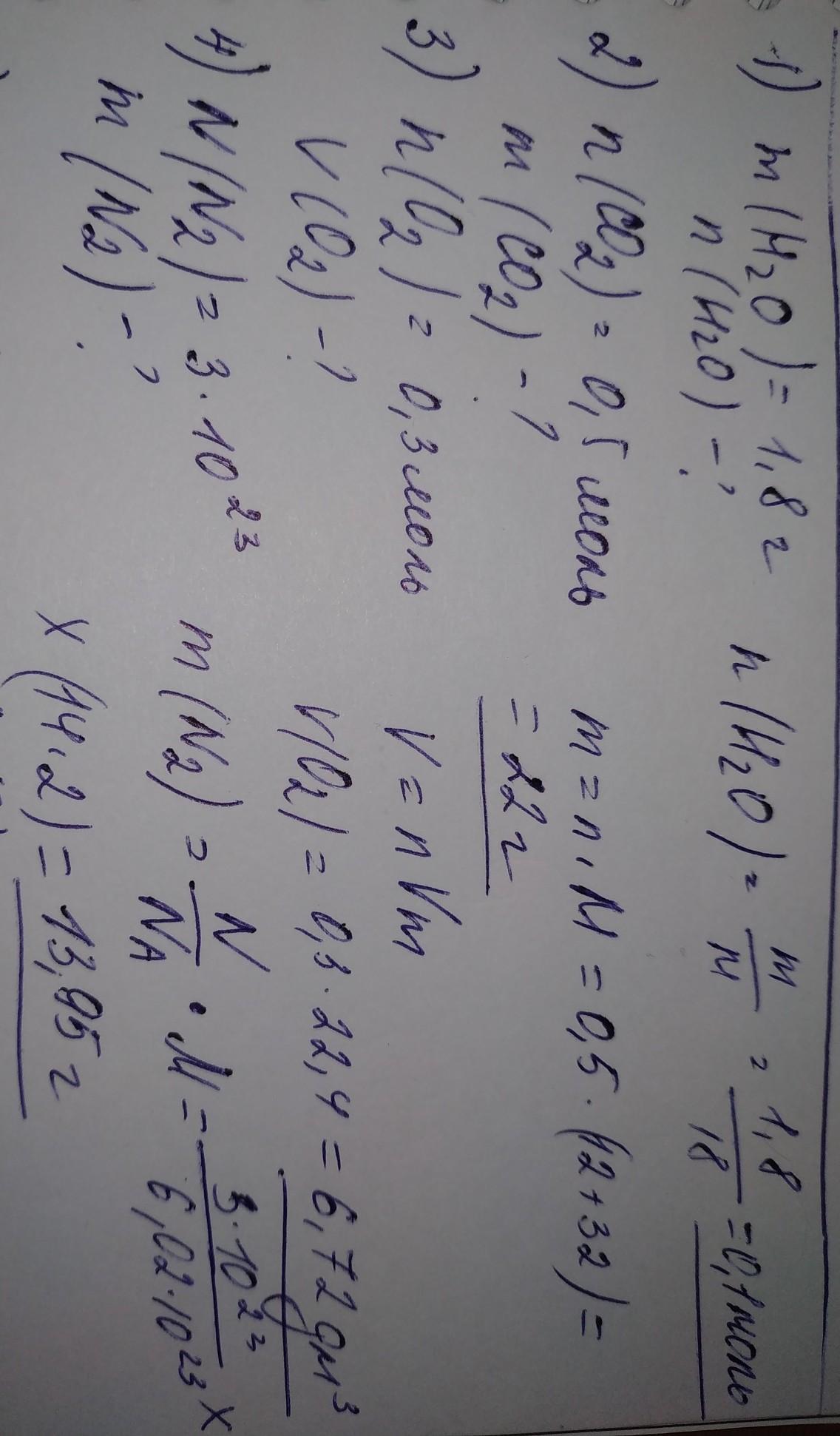 4. Какова масса 3∙1023 молекул азота (N2)?