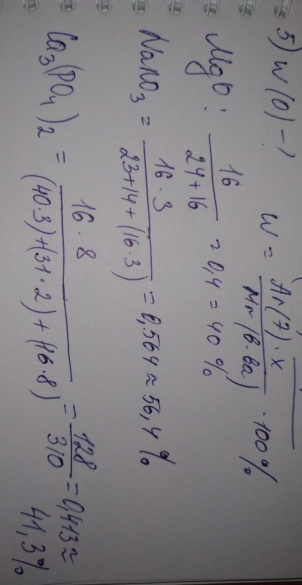 5. Рассчитайте массовую долю кислорода в веществах, формулы которых MgO, NaNO3, Ca3(PO4)2