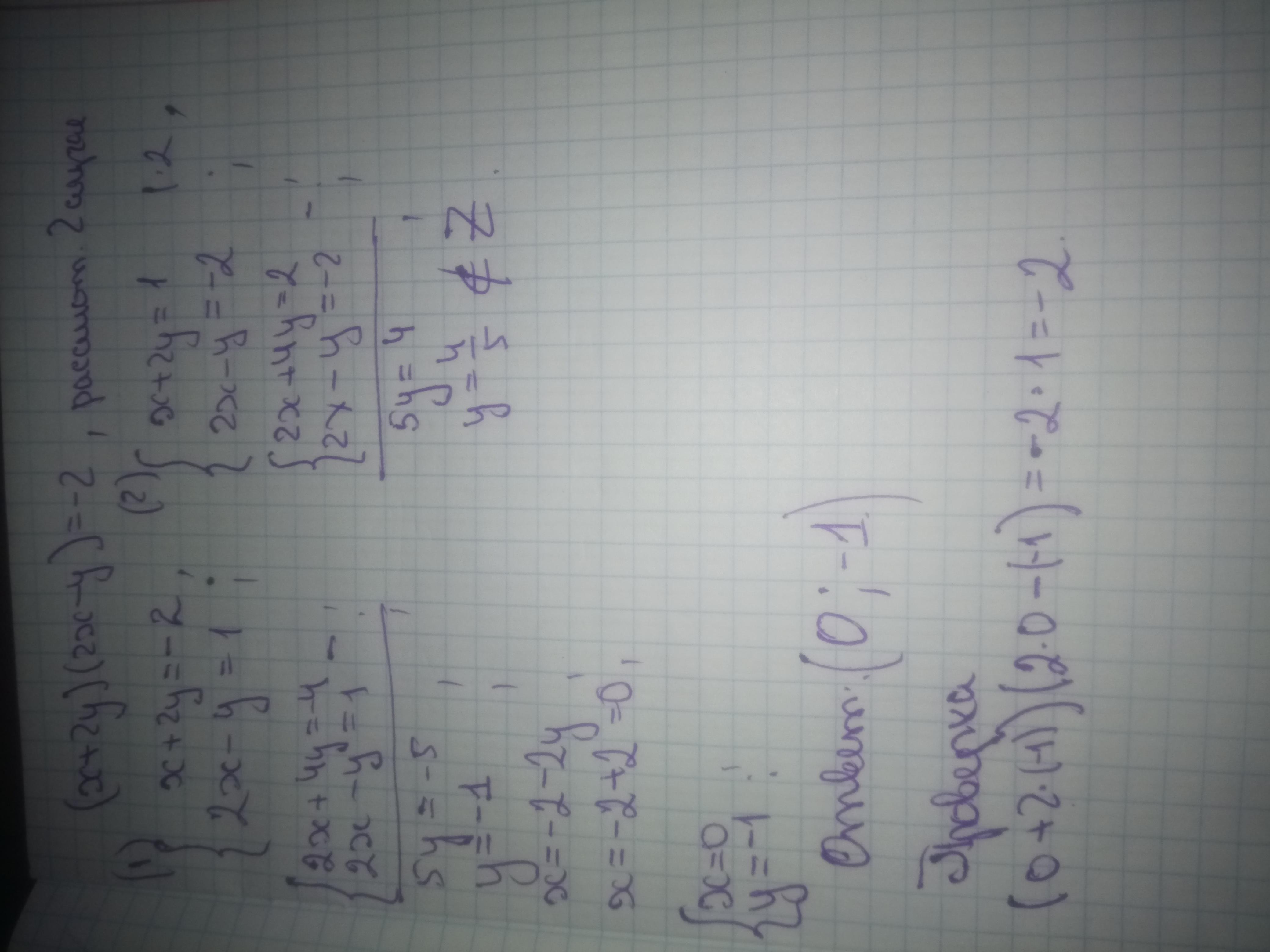 -5у=-5, у=1, тогда х=2-2=0 (0;1)