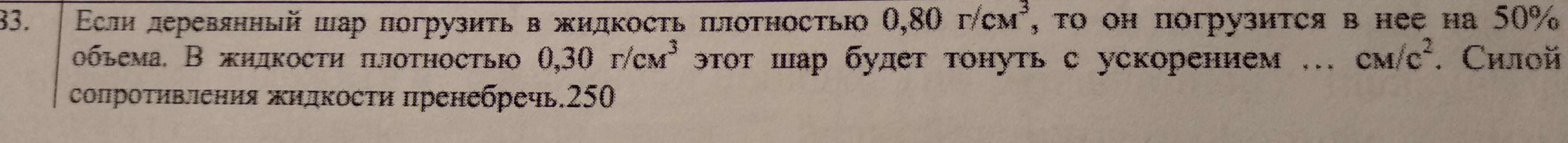 a = g - ρ₂*g/ρдер = 10 - 300*10/400 = 10 - 7,5 = 2,5 м/с² или 250 см/c²