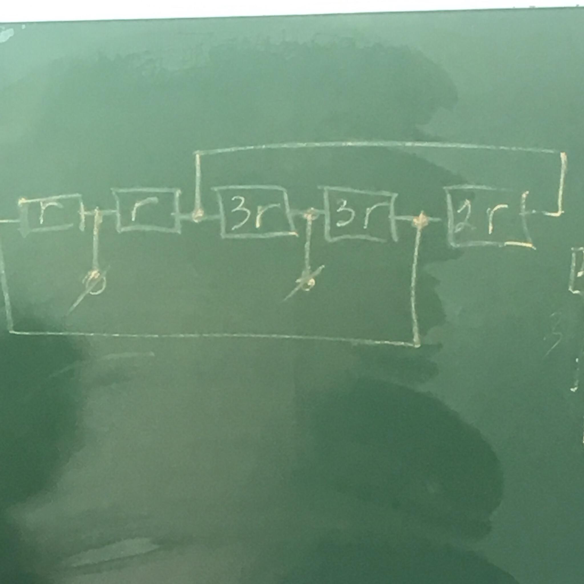 Два плеча моста r+3r и r+3r стоят паралельно друг к другу. Мост уравновешен, ток в диагонали равен 0. Два плеча паралельно дадут 2r.