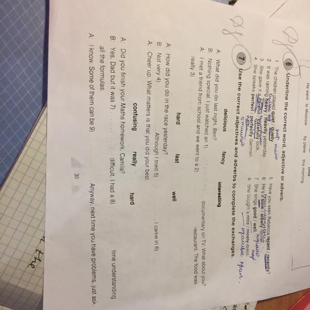 B: Yes, Dad but it was 7) really difficult. I had a 8) hard time understanding