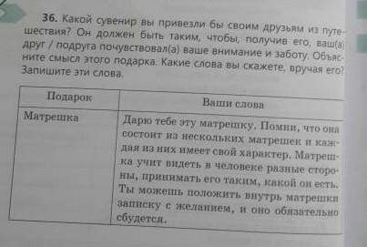 36. какой сувенир вы привезли бы своим друзьям из путешествия? Он должен быть таким чтобы, получив его, ваш(а) друг/подруга почувствовал(а) ваше внимание и заботу. Объясните смысл этого подарка. Какие слова вы скажете, вручая его? Запишите эти слова