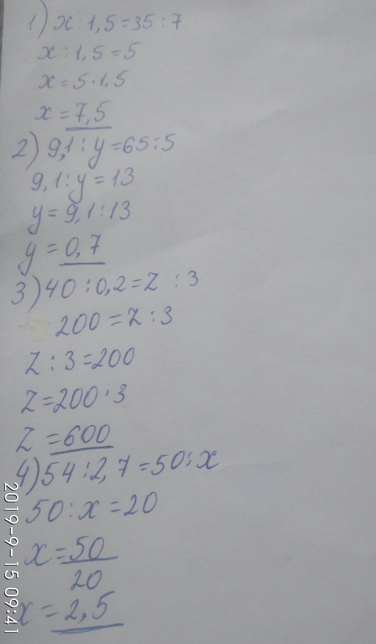 1) х:1,5=35:7 x=1,5*35/7=7,5