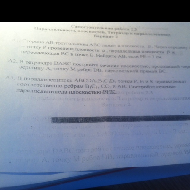 В тетраэдере DABC постройте сечение плоскостью ,проходящей через вершину А ,точку М ребра DB параллельной прямой BC