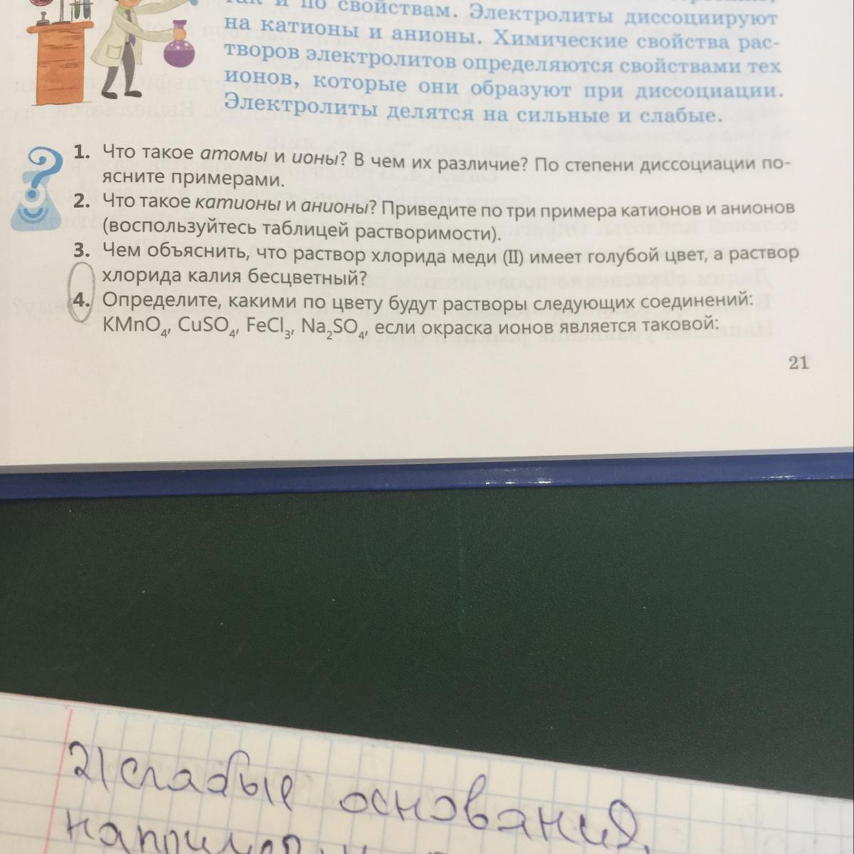 Помогите сделать 4 задание определите какими по цвету будут растворы следующих соединений