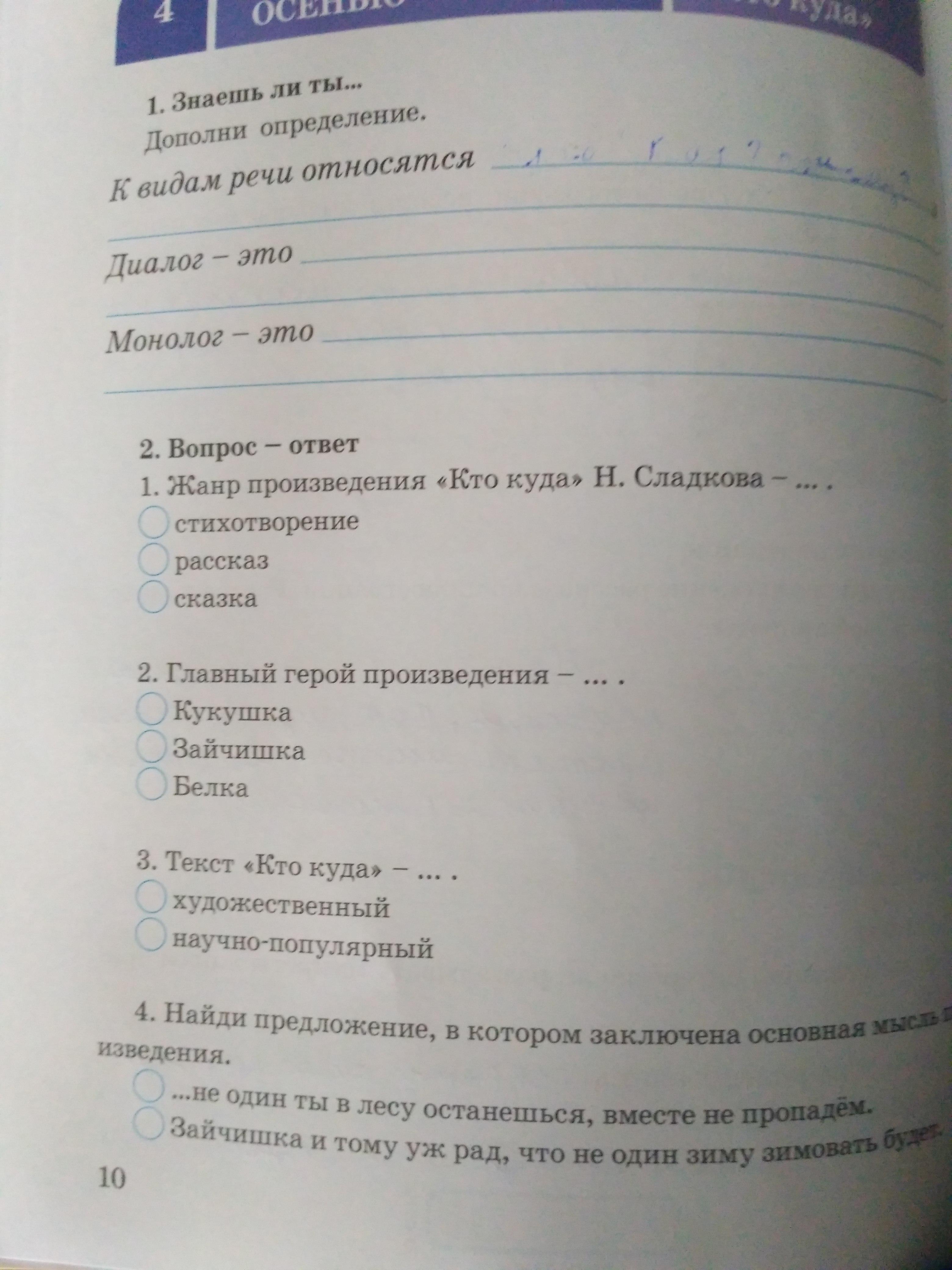 Жанр произведения «Кто куда» Н. Сладкова - сказка.