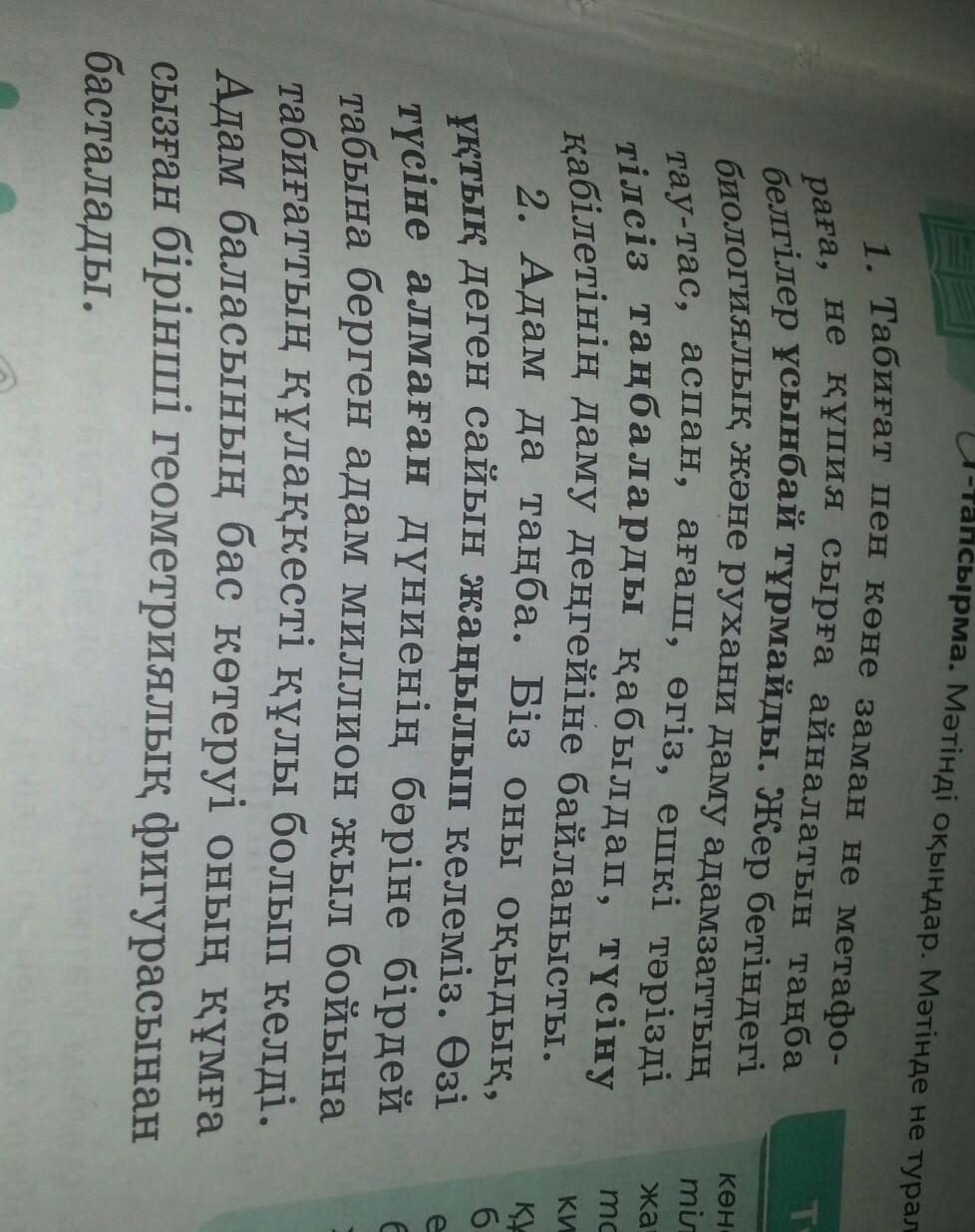 3-тапсырма. Мәтіннің 1-бөлігіндегі қарамен берілген сөздердің анто-