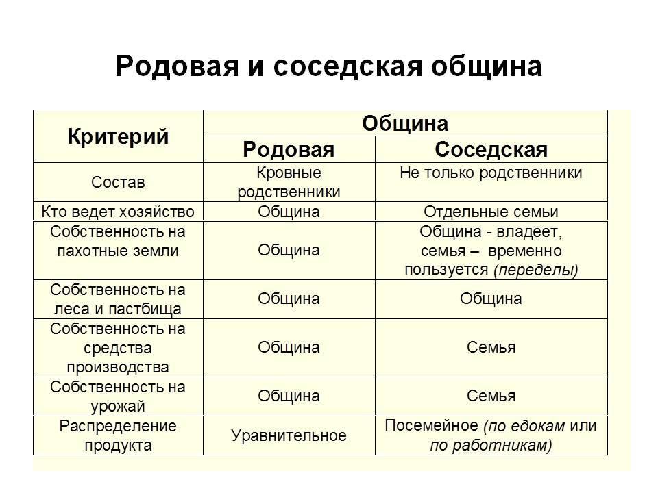 с помощью учителя составьте схему признаки родовой общины какие признаки выражает слово родовая а какие слово община