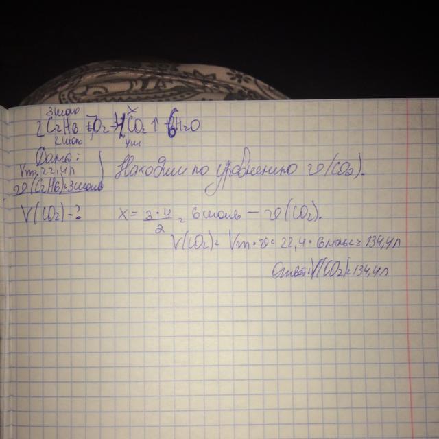 установить объем сгоревшего C2H6 в количестве 3 моль. чему равен объём получившегося углекислого газа