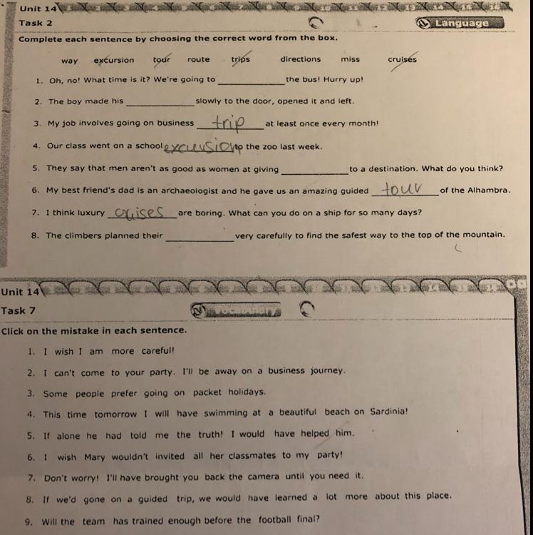 Task 2 Complete each sentence by choosing the correct word from the box.