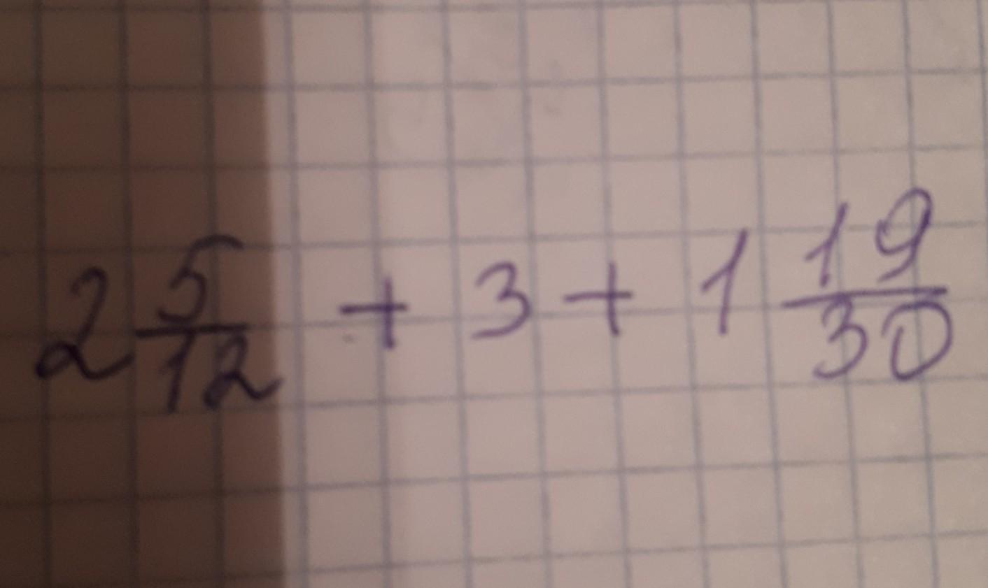 2целых5/12+3целых+1целых19/30=29/12+3целых+49/30=145+180+98/60=423/60=7целых3/60=7целых 1/20