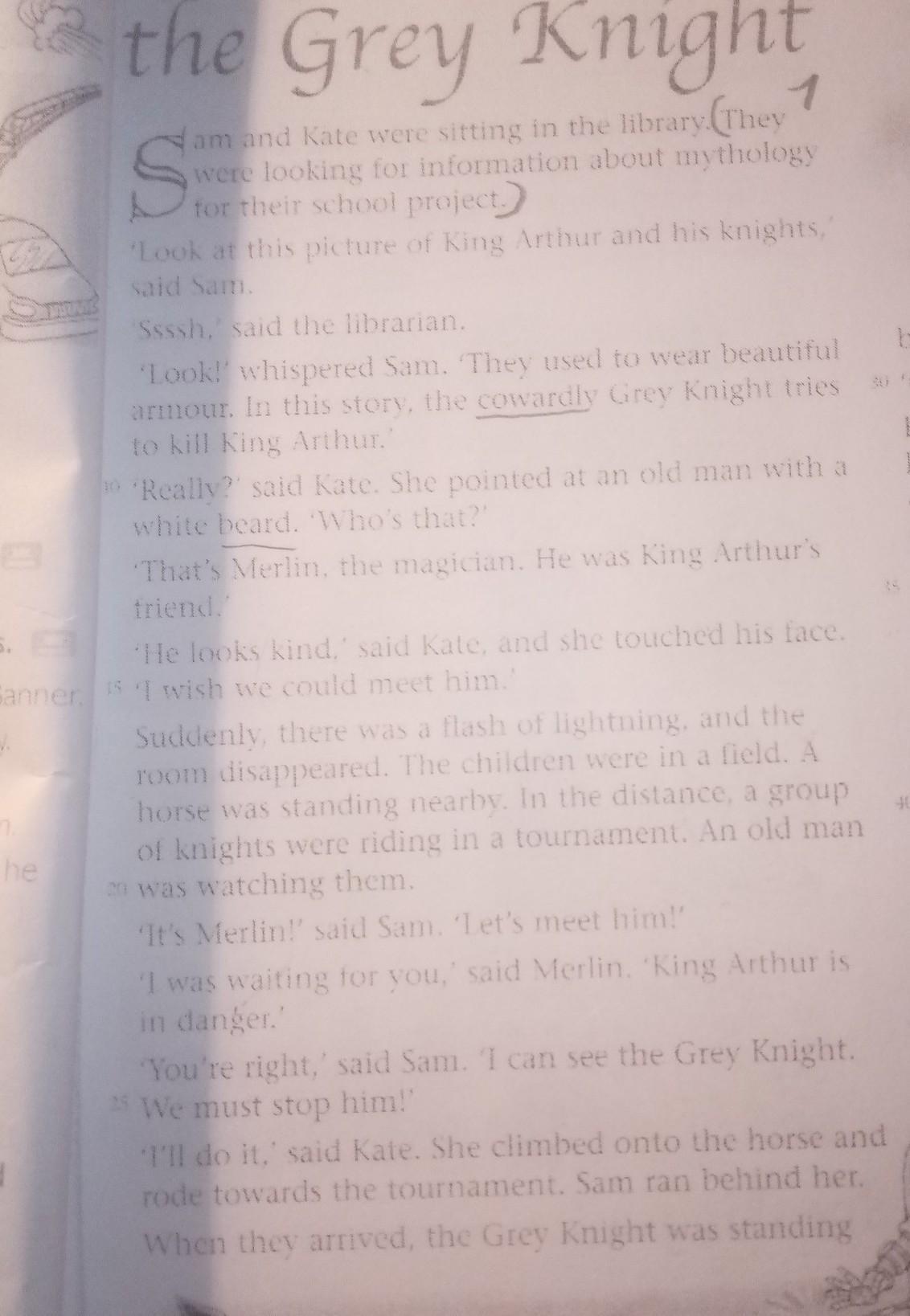Сэм и Катя сидели в библиотеке. Они смотрели информацию о мифологии для ихнего школьного проекта . "Посмотри на эту картину Королевства Артура и его рыцарей , сказал Сэм"