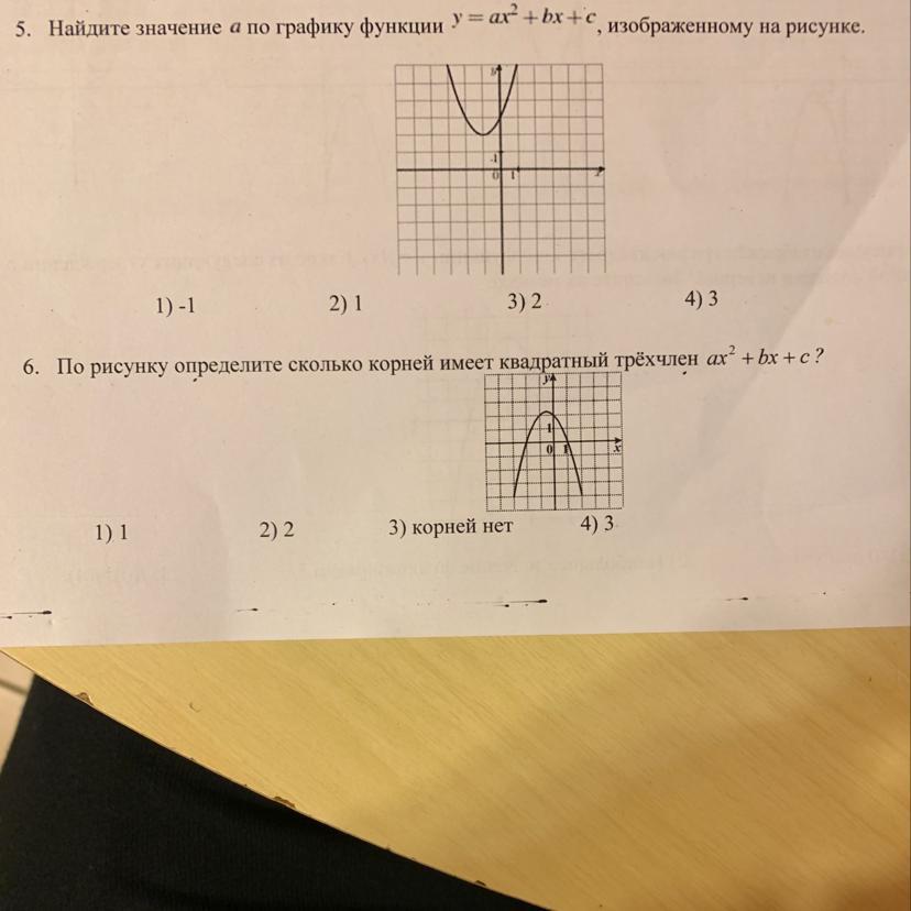6)По рисунку определите сколько корней имеет квадратный трёхчлен ax^2+bx+c