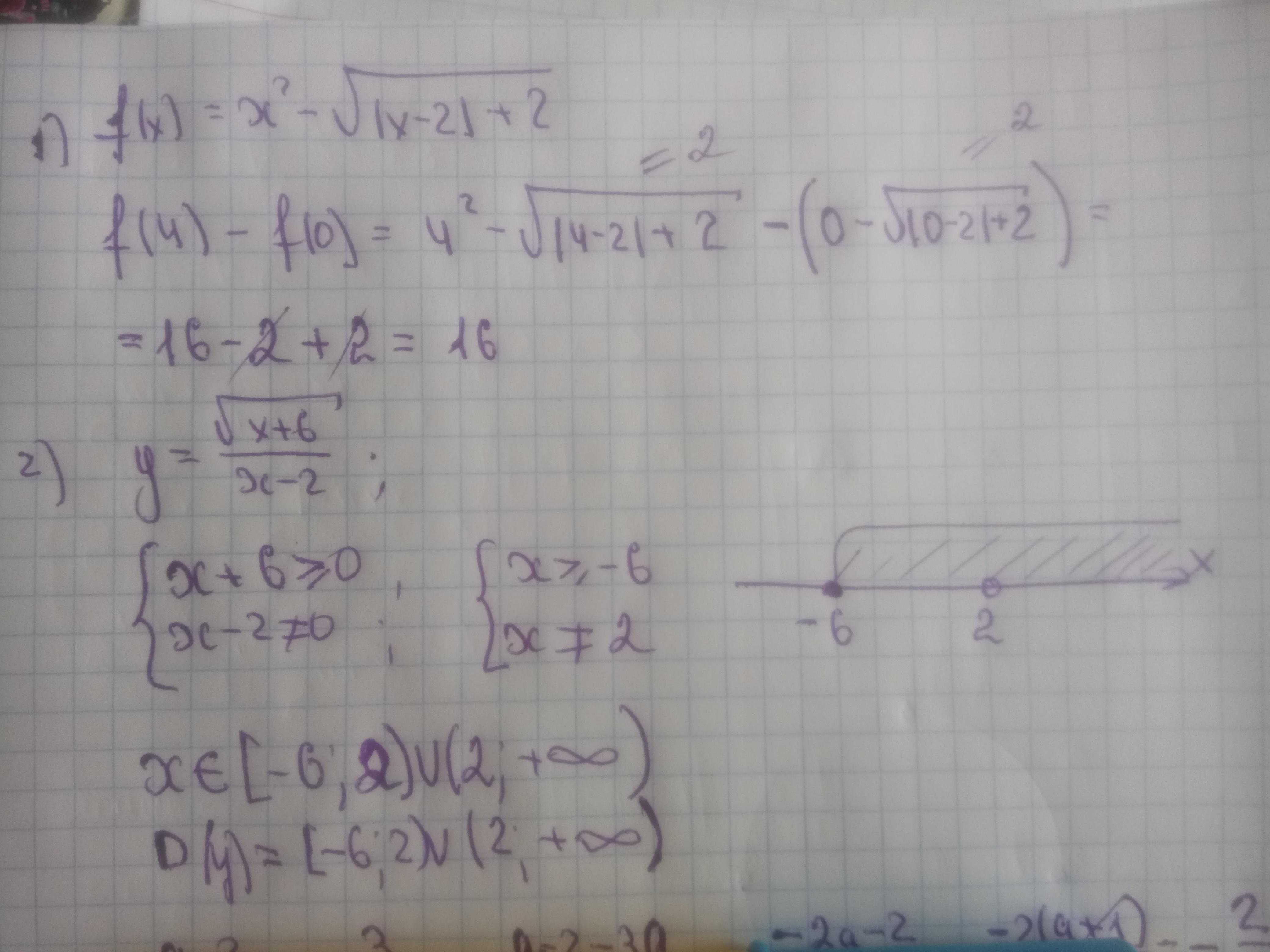2)D(y) найдем из системы {x+6≥0,x≠2; {x≥ -6,x≠2.