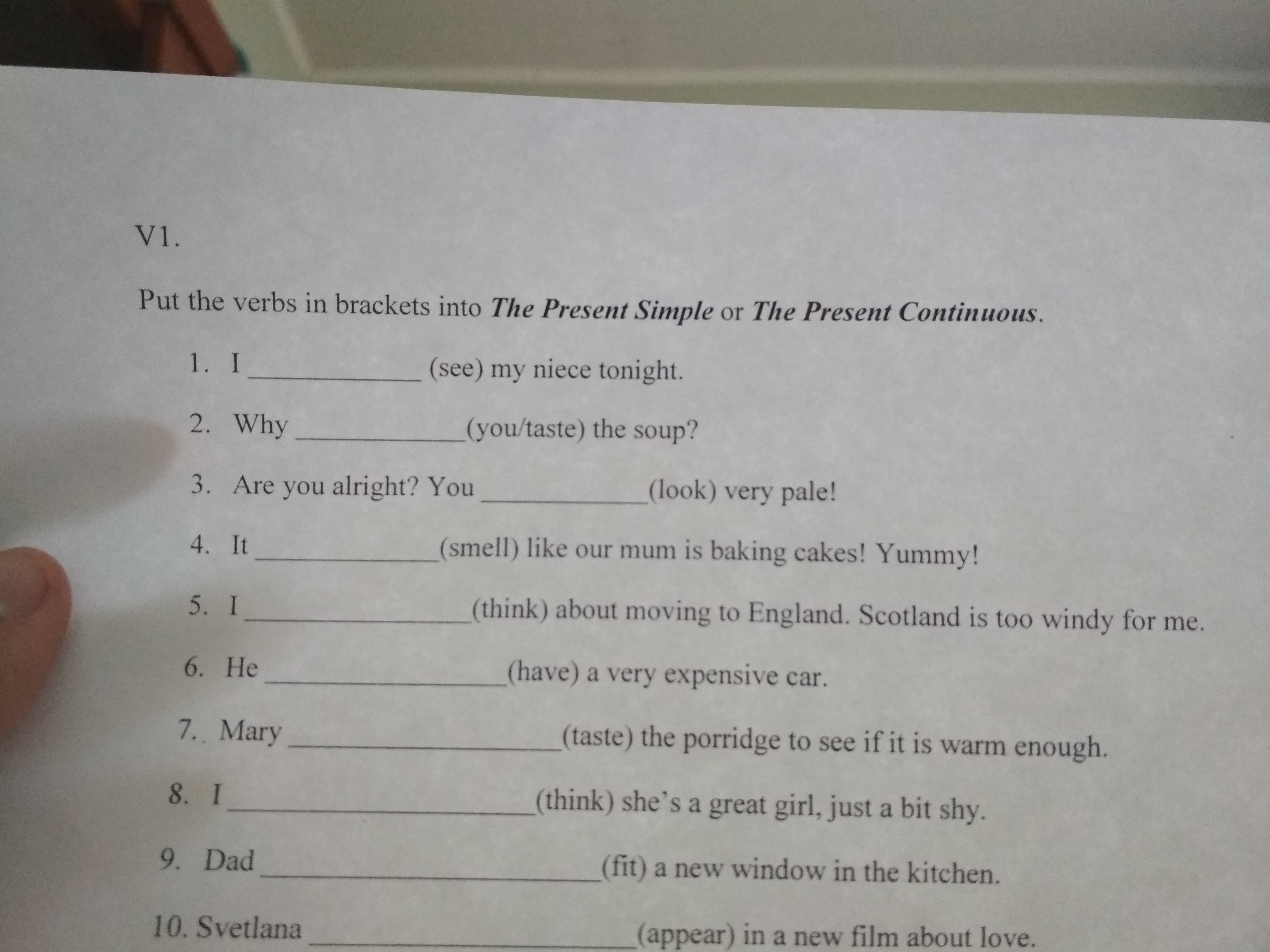 V1. Put the verbs in brackets into The Present Simple or The Present Continuous.