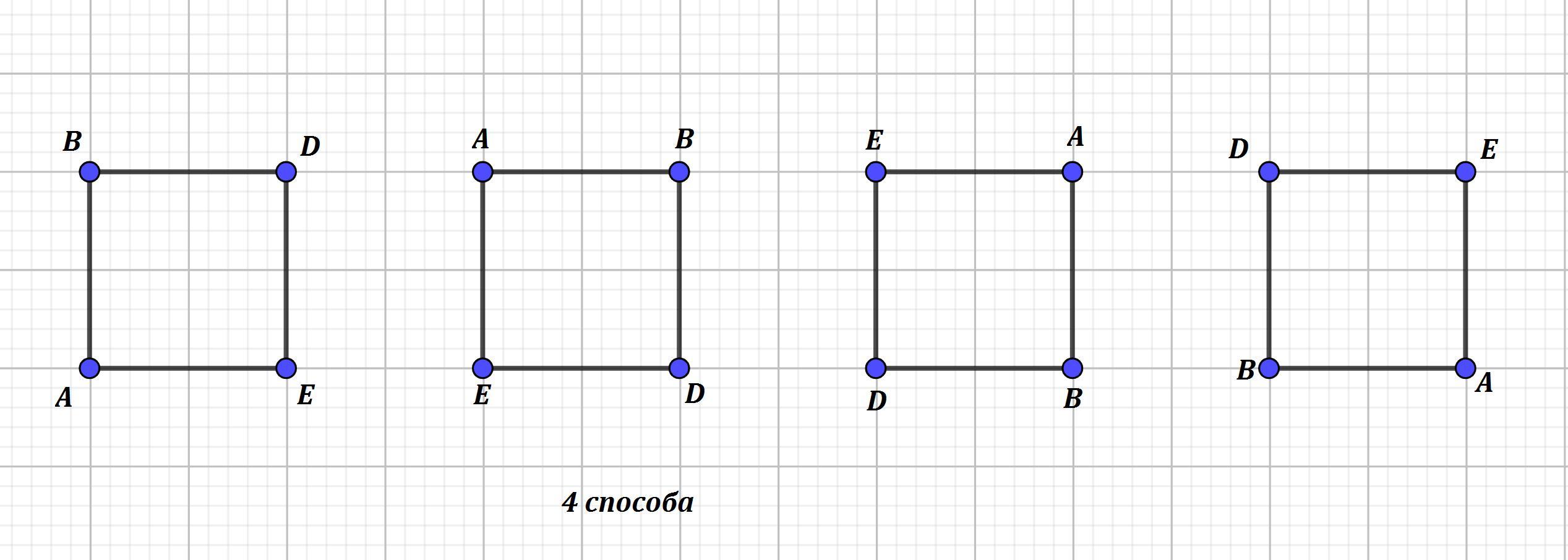 Начертите квадрат. Обозначьте его вершины буквами А, В, D, E. Сколько различных способов обозначения квадратов способ на рисунке.