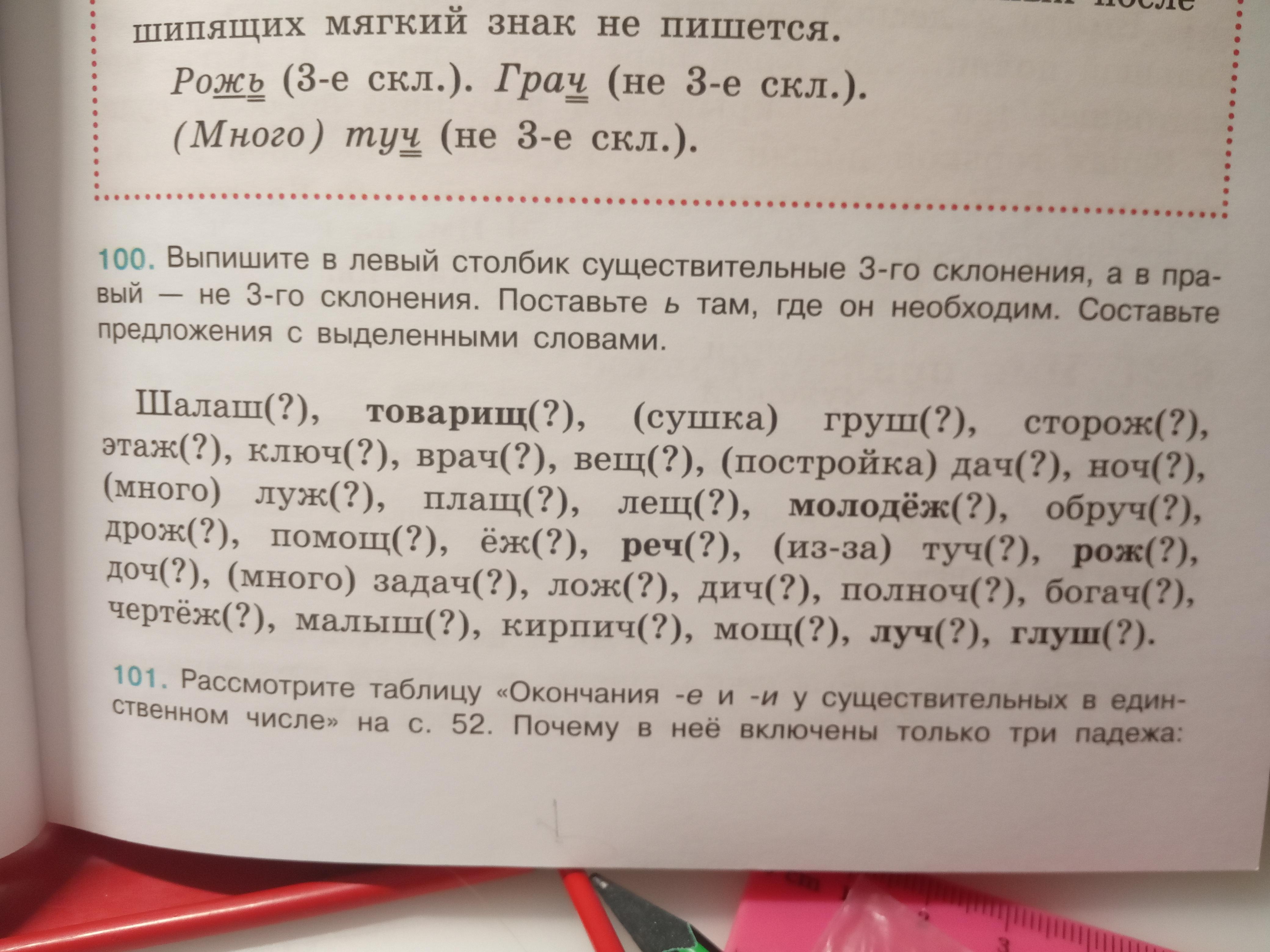 3 склонение: вещь,ночь, молодёжь, дрожь, помощь, речь, дочь, ложь, дичь, полночь, мощь, глушь