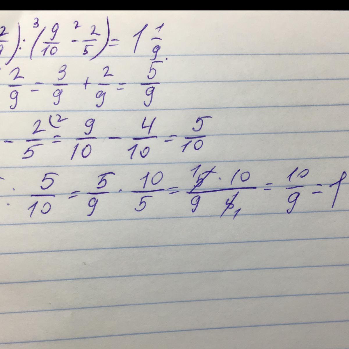 1 и 2 действия - сложение и вычитание, приводим дроби к общему знаменателю. Деление - это умножение дроби делимого на дробь обратную делителю (меняем местами числитель и знаменатель у делимого).