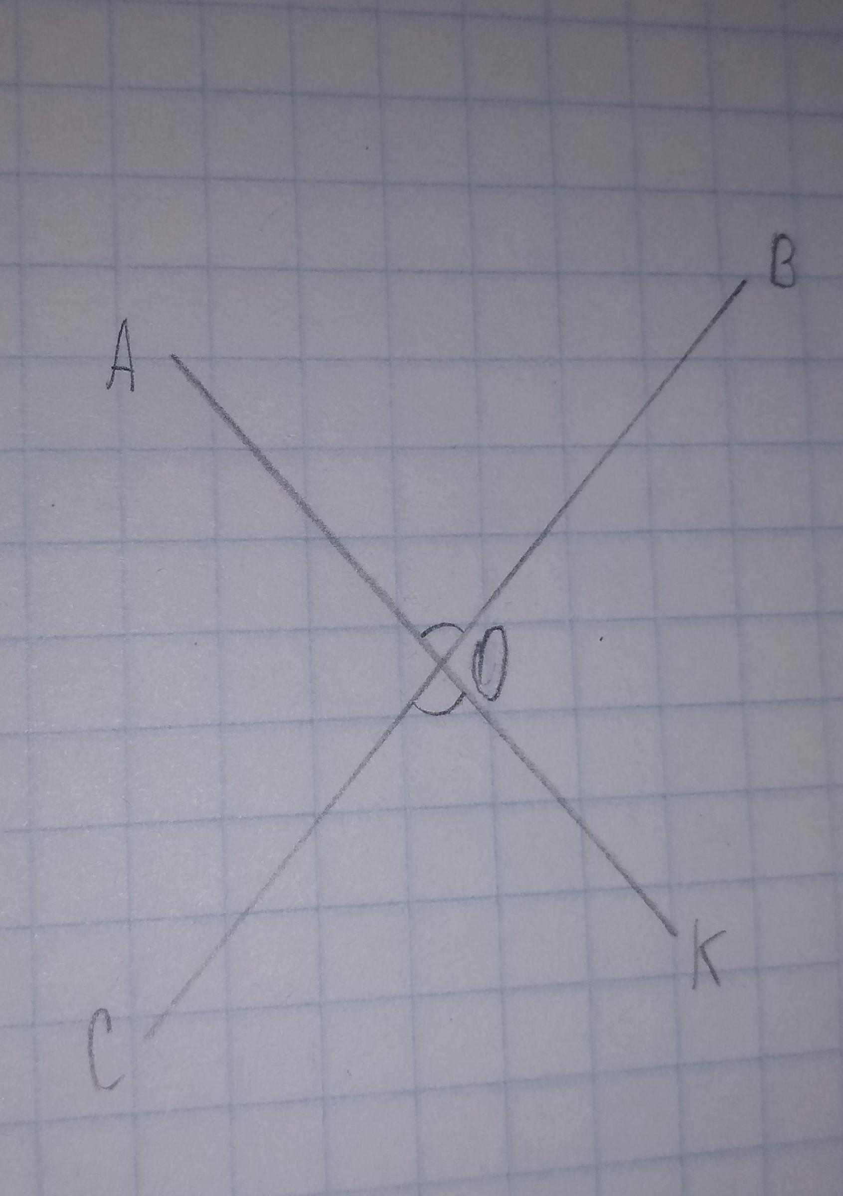 На рисунке угол AOB=углу COK, так как они вертикальные.