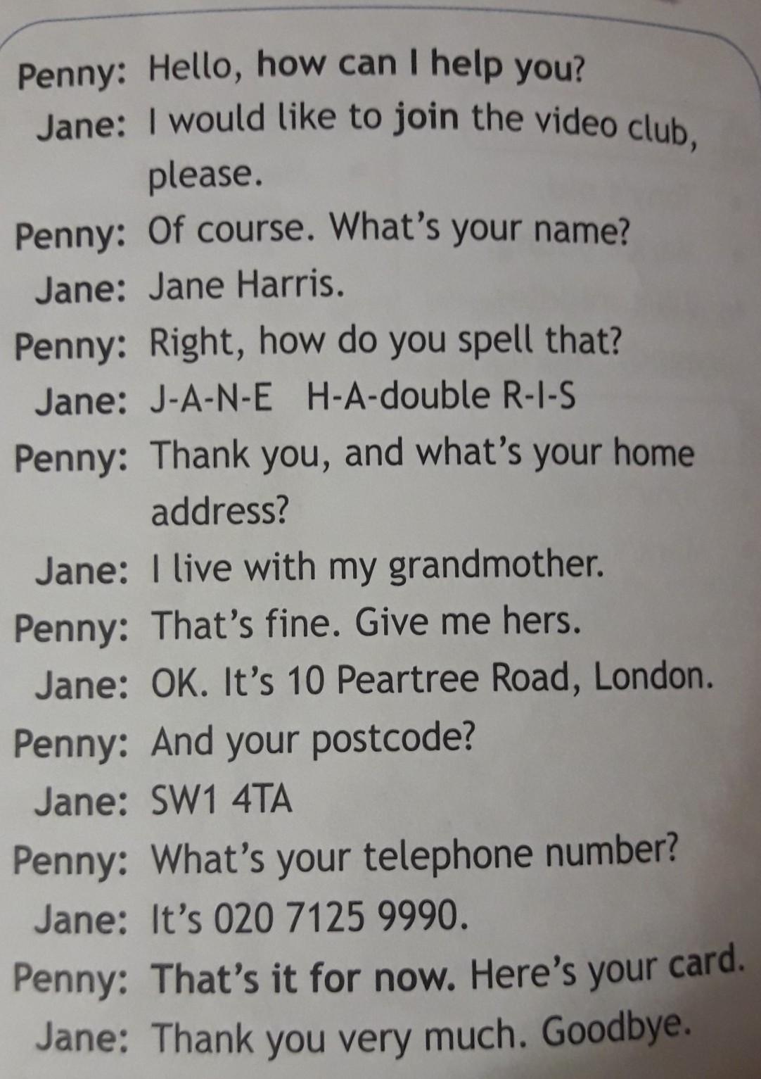 Джейн: Я бы хотела присоединиться к видео клубу, пожалуйста.