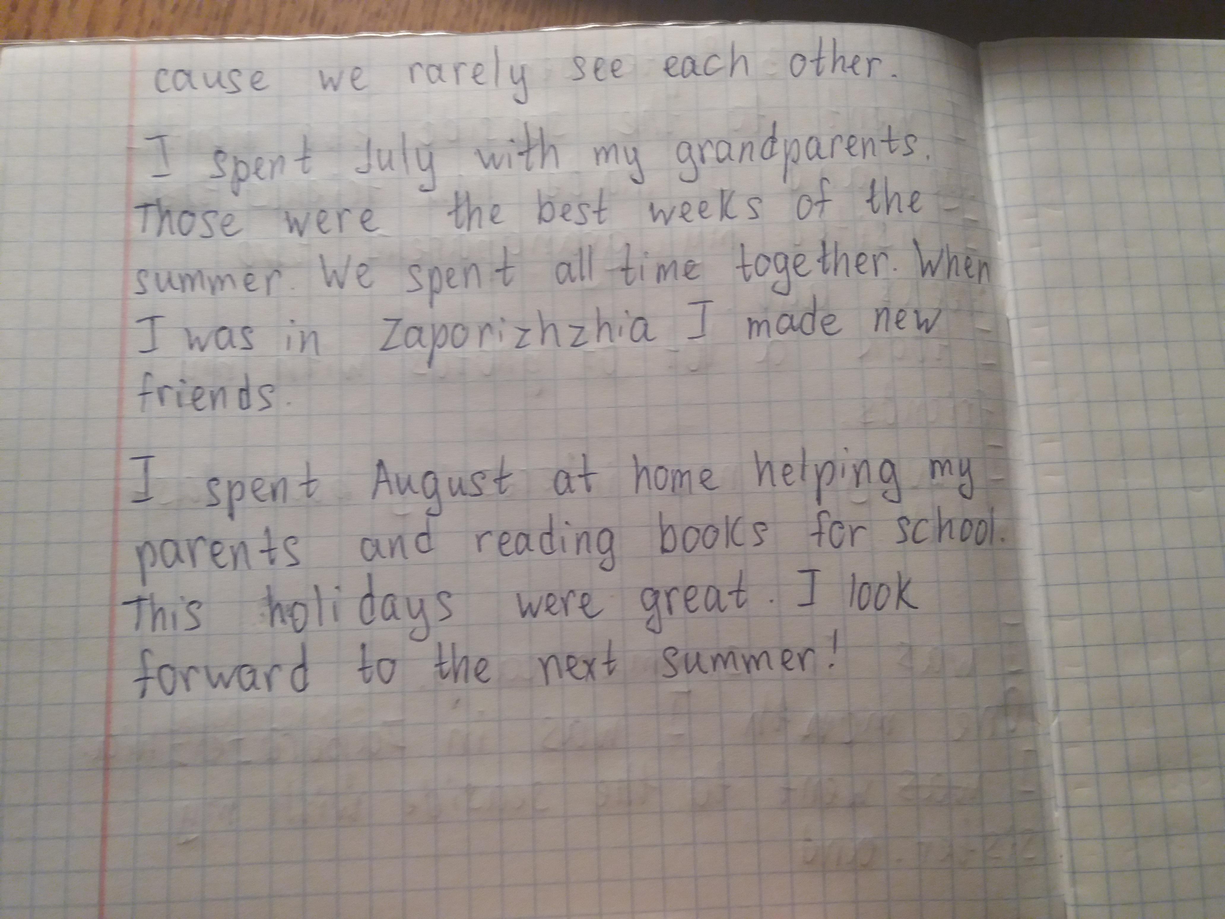 I have look forward to my school holidays,especially to my summer holidays,because they are longer then my winter holiday.When it is very hot I usually go to the forest.The air is cold there.I like to walk in the shade of the trees and pick mushrooms and berries.After having a good hlioday we go to back to scholl healthy and strong.