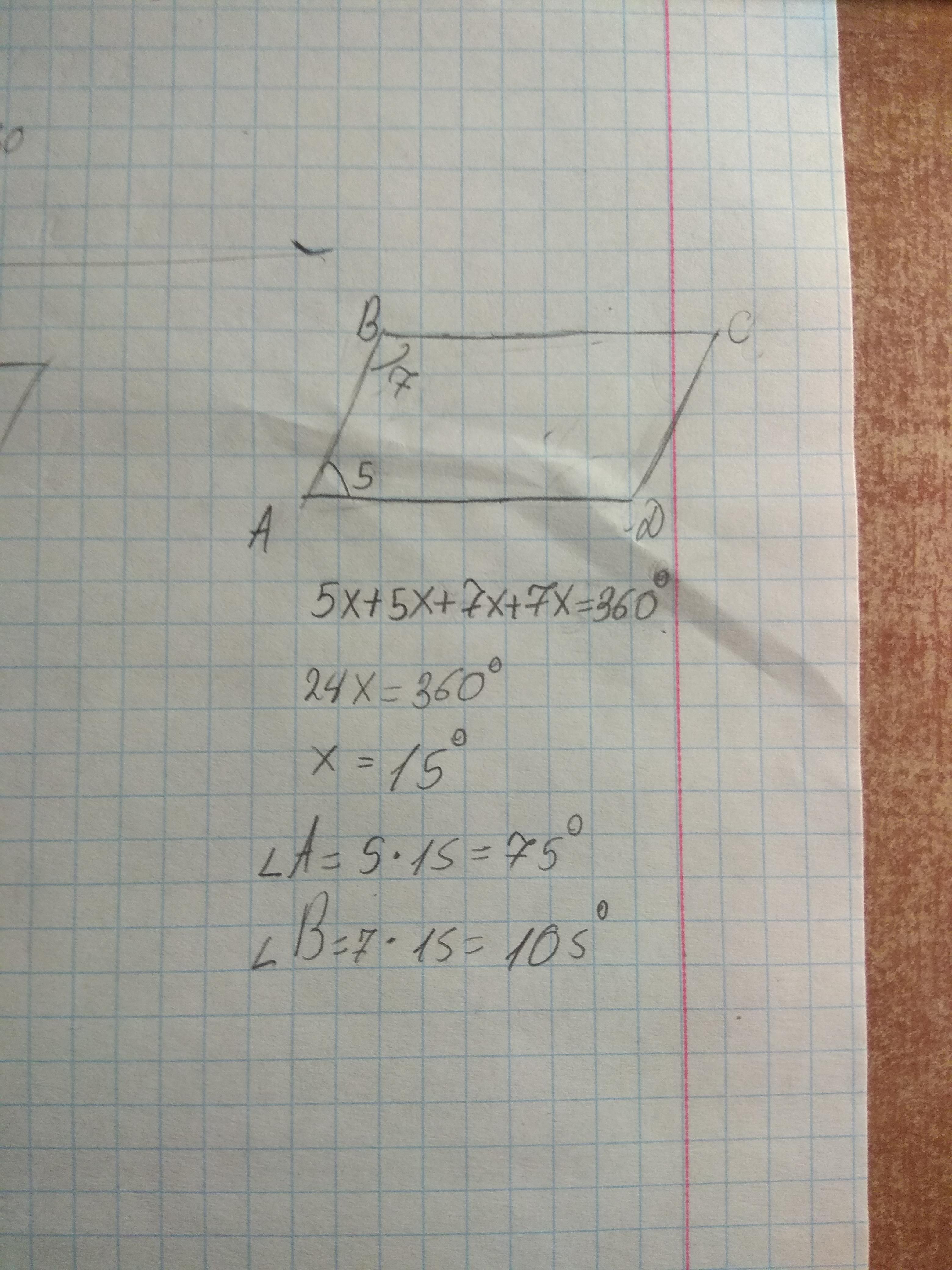 градусні міри двох кутів паралелограма відносяться як 5:7 знайти кути кути паралелограма