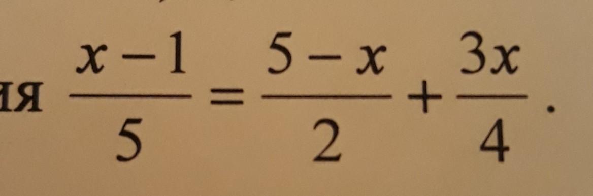 х-1 / 5 = 5-х / 2 + 3х/4 (делим на 20)