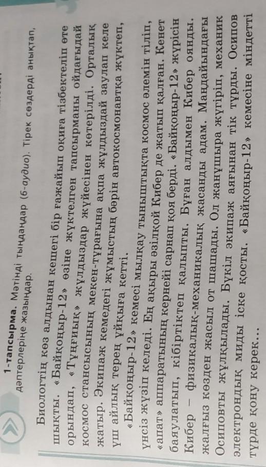 1)Əңгіме үзіндісі "Байкоңыр 12"ғарышкемесіндегі болған жайт туралы.