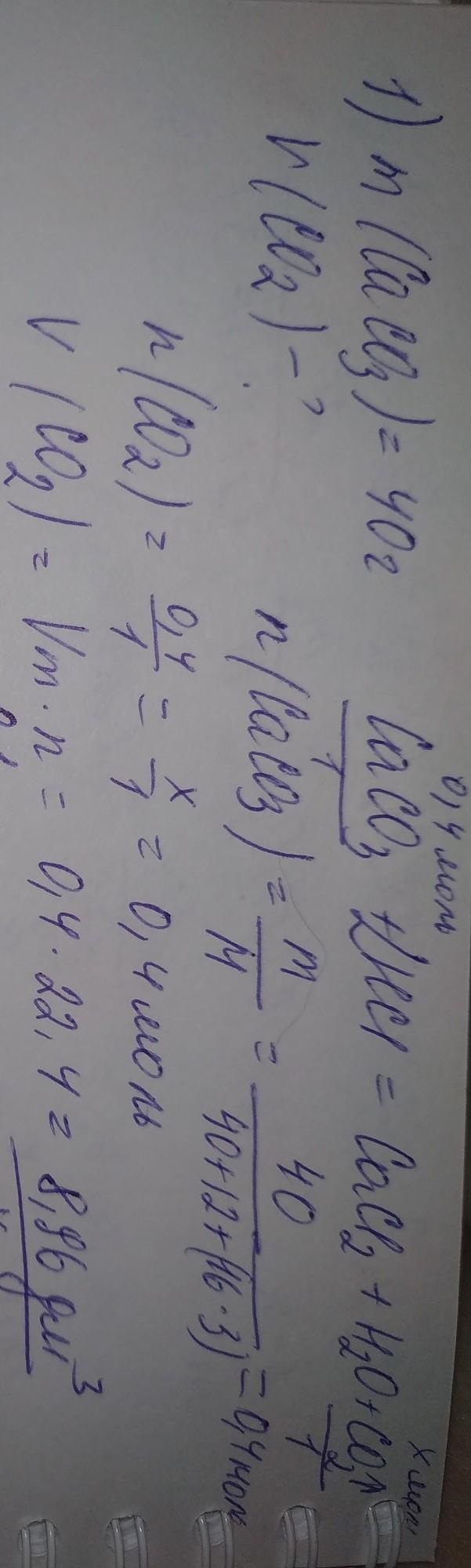 1. Какой объем углекислого газа выделится при взаимодействии соляной кислоты с 40 г кальций карбоната