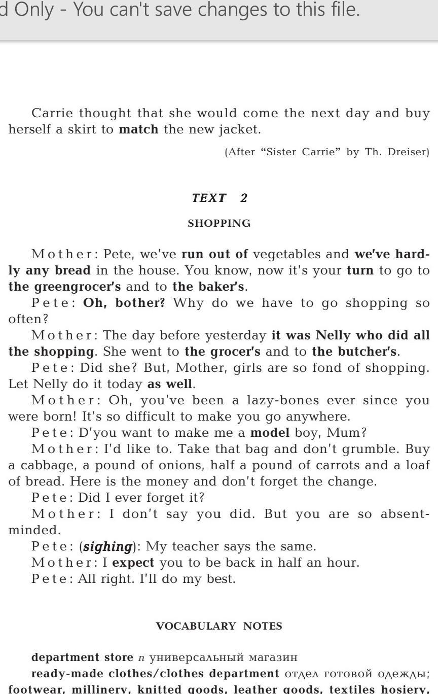 Мать: Пит у нас закончились фрукты и хлеб. Теперь твоя очередь идти к булочнику и к зеленщику.